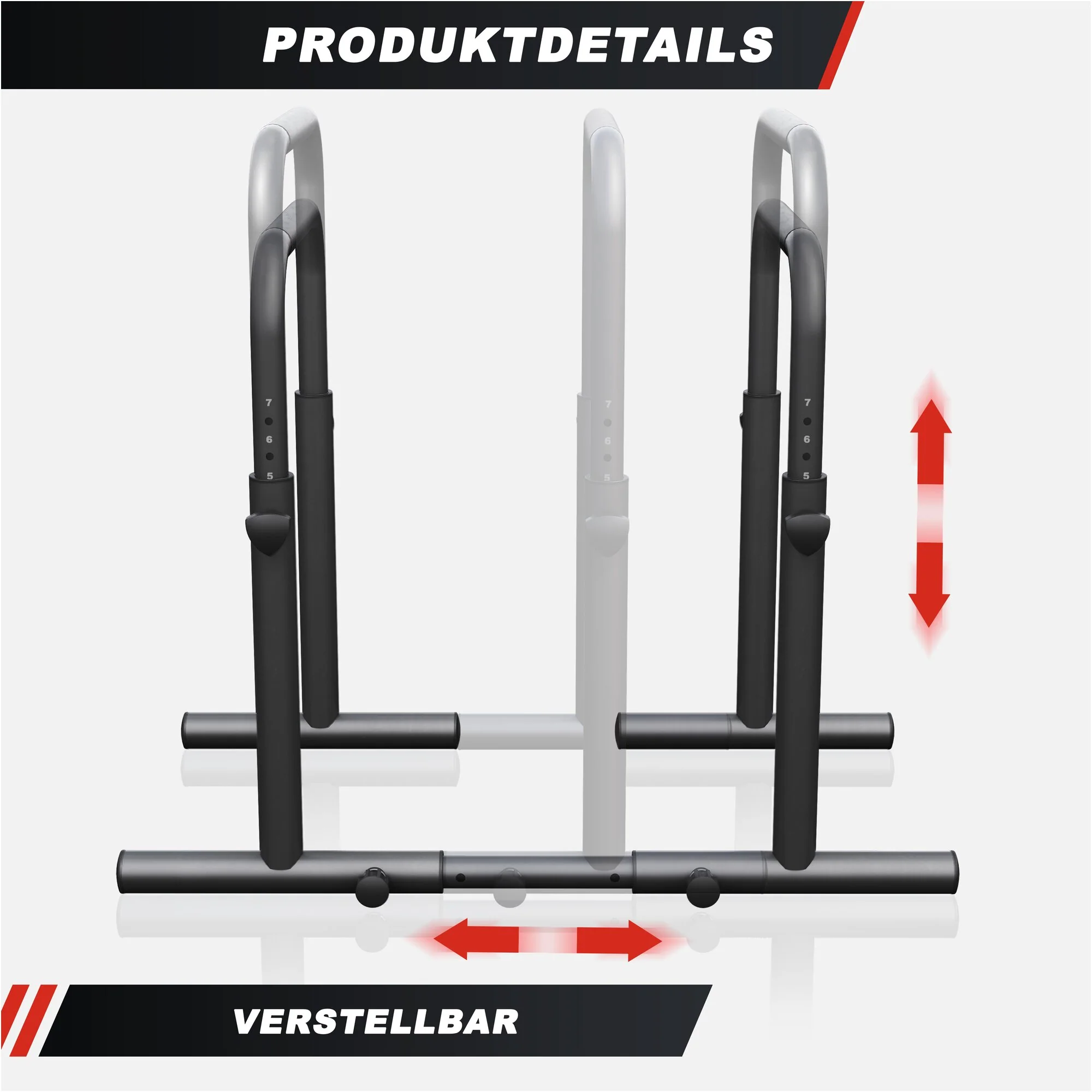 Die vielseitigen Dip Barren von GORILLA SPORTS® sind Dein perfektes Calisthenics Equipment für Zuhause! Mit individuell einstellbarer Höhe (80-100 cm) und Breite (40-60 cm) passen sie sich flexibel Deinen Trainingszielen an. Egal ob Dips, L-Sit oder Push-Ups – die rutschfesten Griffe bieten Dir sicheren Halt und höchsten Komfort. Perfekt für ein effektives Training Deiner Brust, Schultern und Arme!