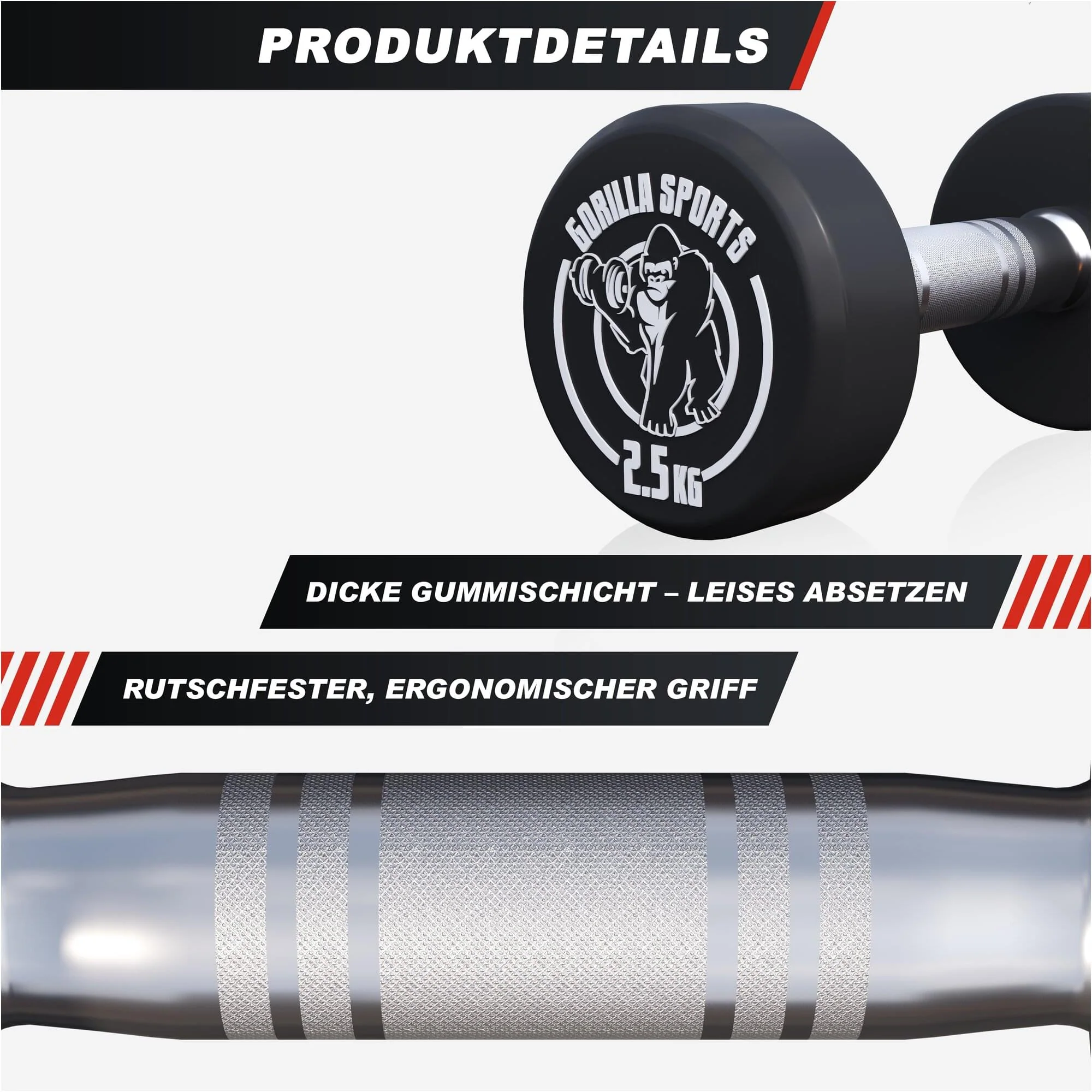 - Kurzhantel mit integrierter KG-Angabe und Gorilla Sports Logo