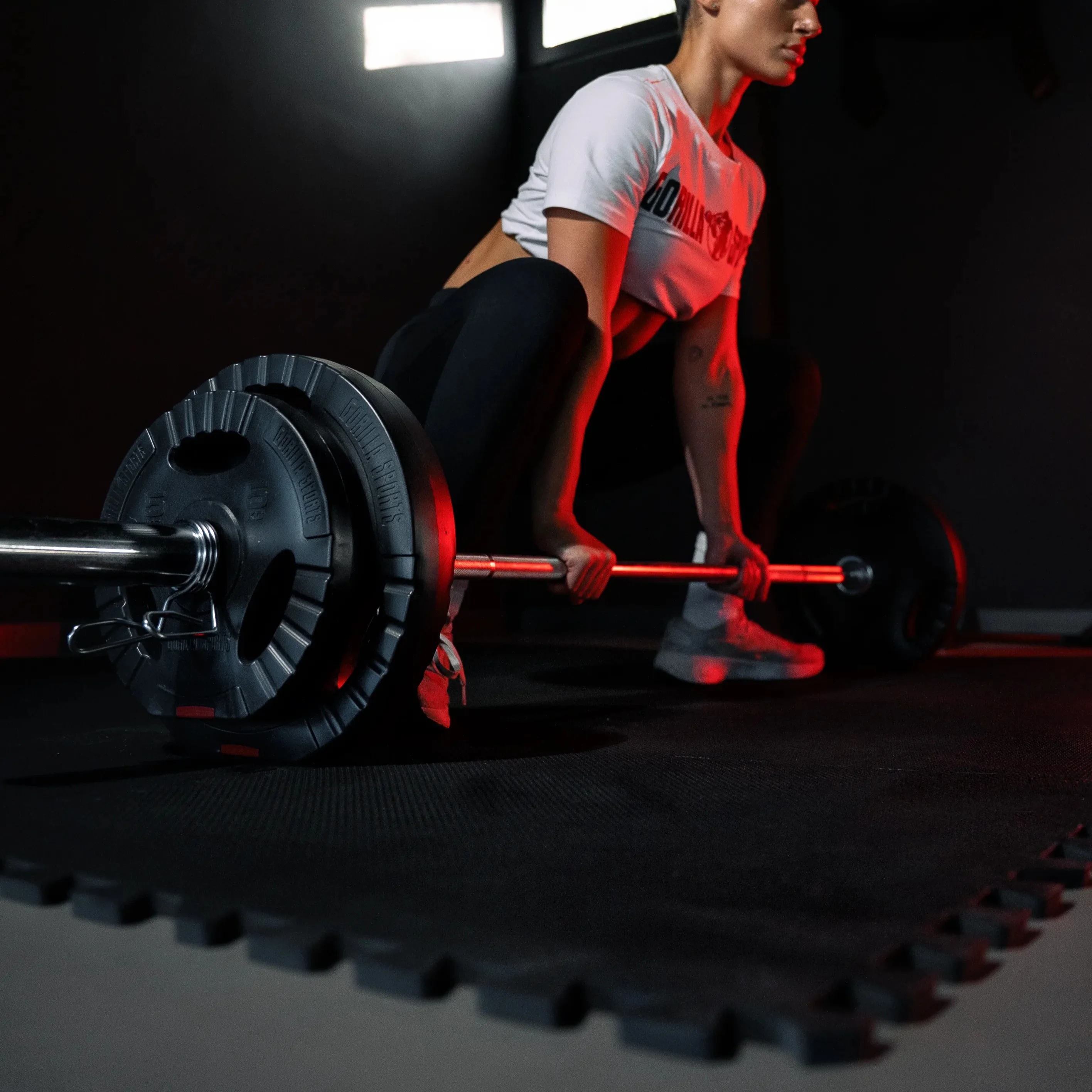 Das Schutzmattenset bestehend aus 16 Matten schützt nicht nur Deinen Boden vor fallenden Gewichten oder schweren Geräten, sondern sieht auch noch stylish aus!
